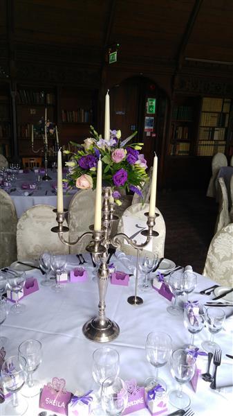 Elegant candelabra floral arrangements designed to add height, romance and classic styling to your wedding ceremony or reception setting.