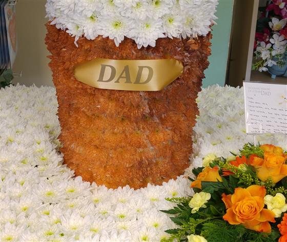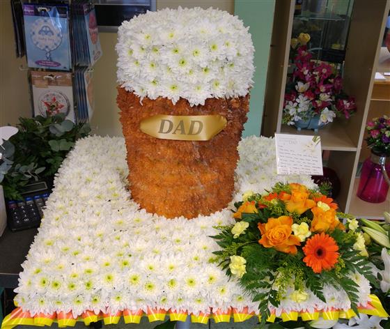 This large beer glass tribute is a 3D design on a large cushion with a spray, stands approximately 55cm tall on a 50cm cushion frame