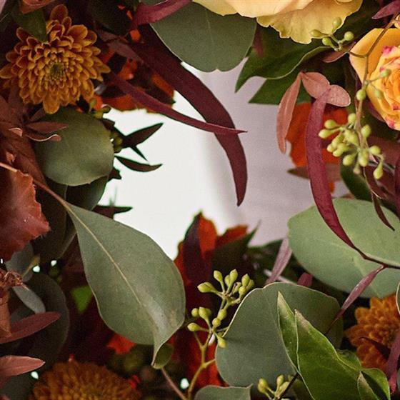 Who said wreaths are only for Christmas? Not us. This gorgeous celebration of the season is part of our on trend collection – which is all about the softer colours of autumn. Expect to see fresh or dried blooms in shades like russet, cream, apricot and chocolate.