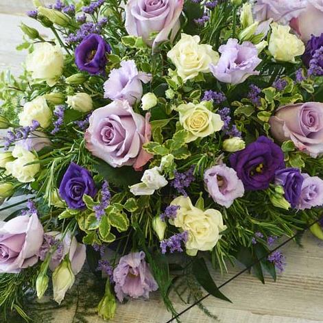 A pretty petite spray in shades of Purple ,lilac and cream 52cm long