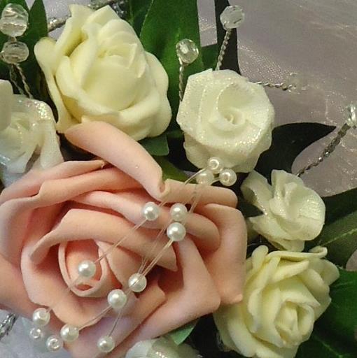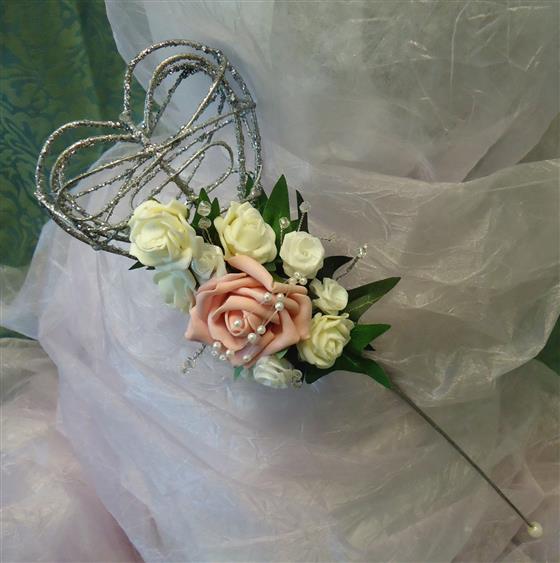 A pretty heart shaped wand, made using artificial roses and pearls. Not available to hire