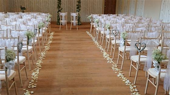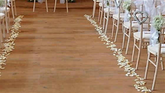 Flower petals scattered to decorate the aisle. Petals are available in different colours to compliment your wedding theme. Prices start from £100.00. Please check with your venue to ensure they will allow this type of decoration.