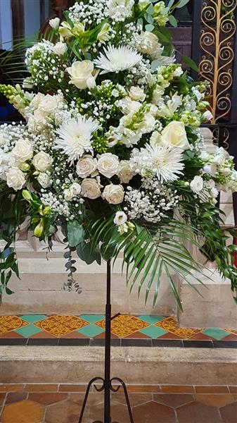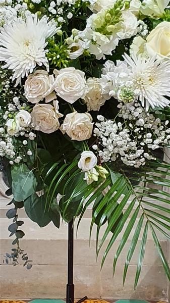 A pretty arrangement of seasonal flowers to grace either a church or reception venue. The pedestal stand is not included in the price but can be hired for a small extra charge, ask for details