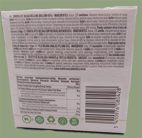 Products do not contain any artificial colours or flavours and are alcohol free. Chocolates contain: milk, lactose, tree nuts, gluten & soya. May contain traces of: egg, tree nuts and peanuts.