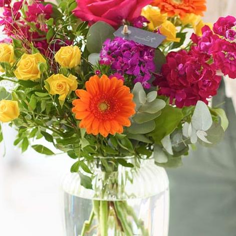 A vibrant mix of seasonal flowers arranged in a vase for instant display