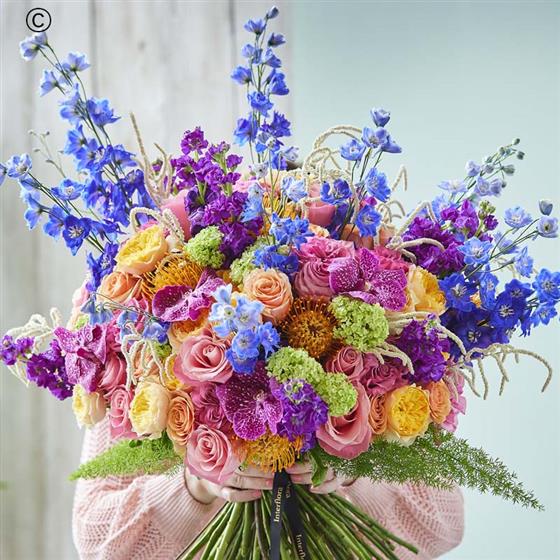 The ultimate gesture of love. A truly stunning handtied bouquet of vibrant flowers featuring only the best and most luxurious blooms, each one is unique as the flowers are selected for their individuality and beauty by an expert florist, picture for illustration purposes only.