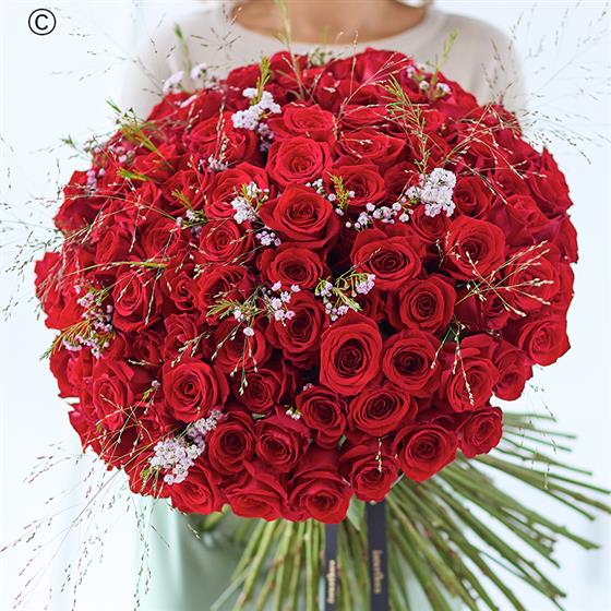 The ultimate romantic gesture, a true showstopper – 100 of the finest red roses, picked for their quality and exquisitely arranged by a local florist.