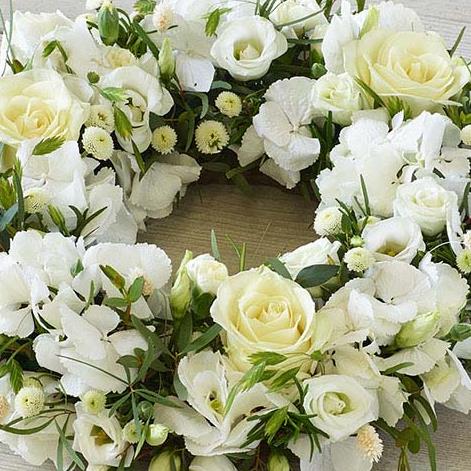 A stunning design of pure white flowers with luxurious foliages including rose, hydrangea and lisianthus standard size shown