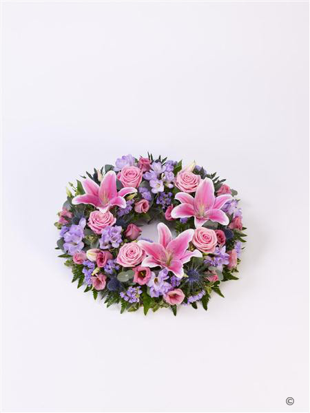 Rose and Lily Pink & Lilac Wreath - Beaufort local delivery only