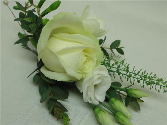 This boutonniere is designed using a selection of flowers to compliment a bridal bouquet