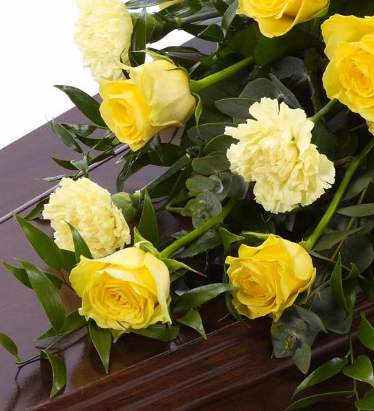 Yellow Rose and Carnation Casket Spray-Beaufort local delivery only