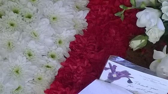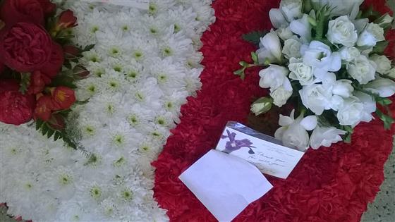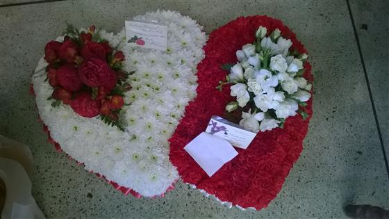This double heart tribute is made in red and white and signifies 2 hearts joined together forever, one size only